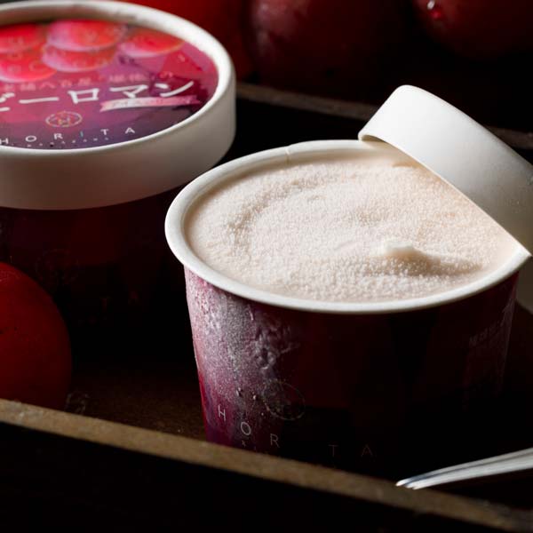石川県が誇る日本最高級ぶどう「ルビーロマン」の美味しさを閉じ込めた、Horitaオリジナルのアイスクリームです。