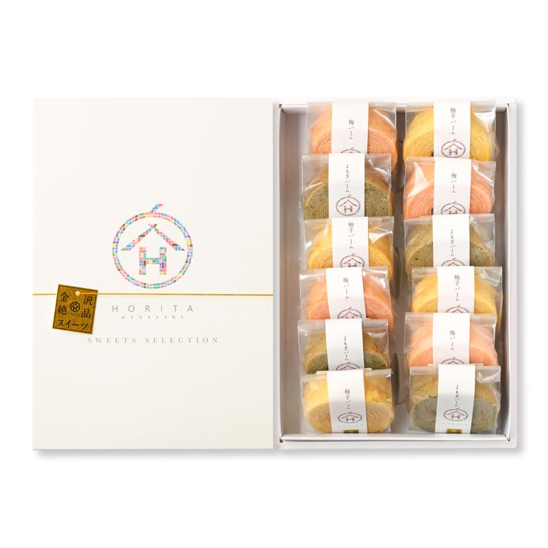 金沢の和風ミニバームクーヘン 12個セット ・・・ よもぎ × 柚子 × 梅