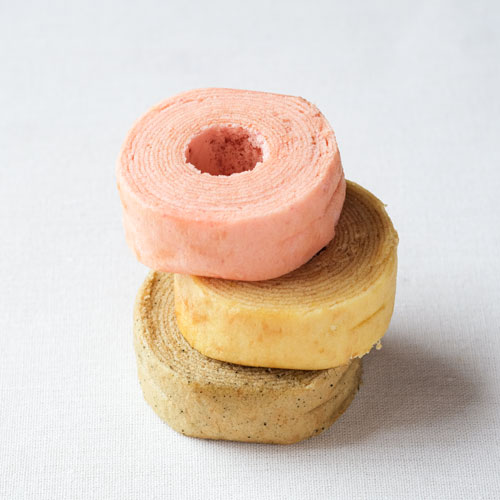 よもぎ、ゆず、梅の3色が華やかな、和風ミニバームクーヘン